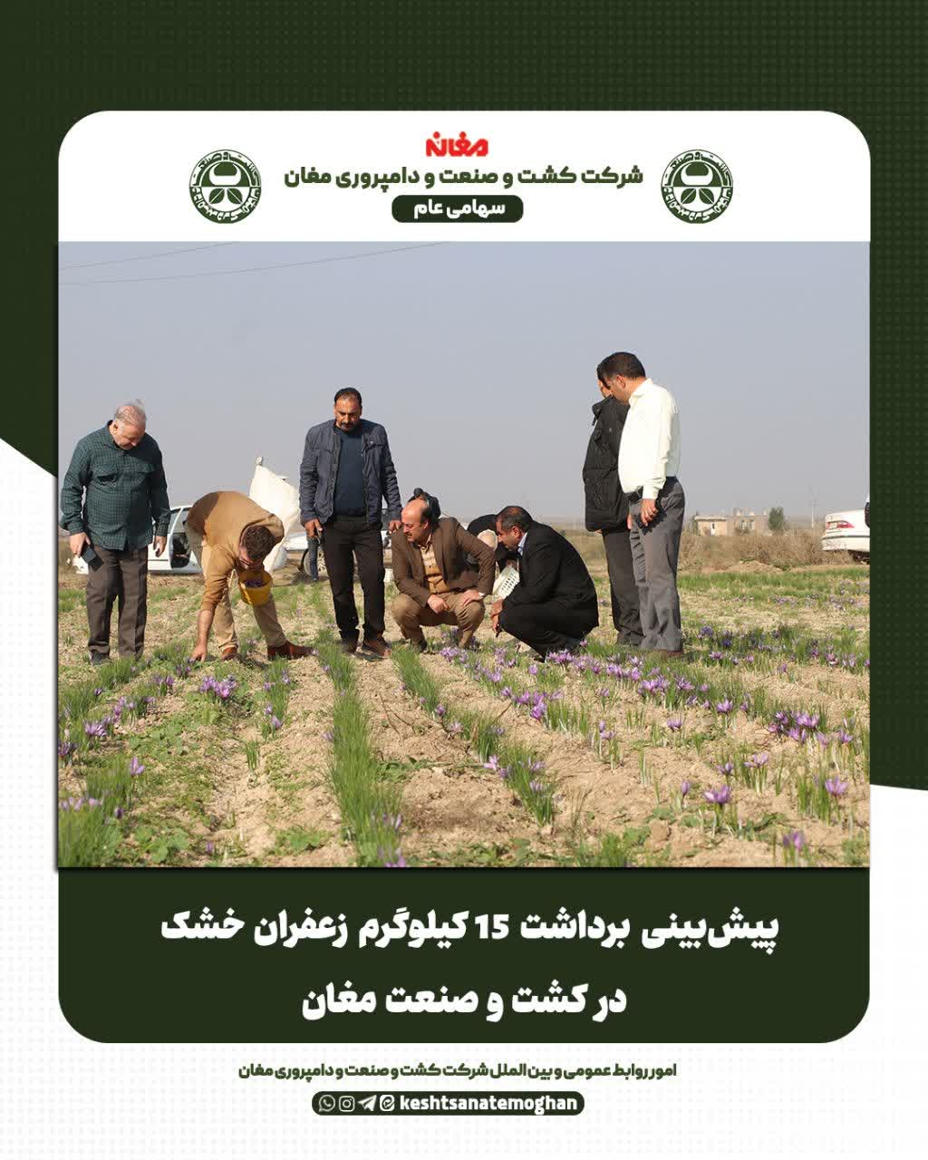 ✅ به گزارش امور روابط عمومی و بینالملل شرکت کشت و صنعت و دامپروری مغان مهندس خلیل نیک شاد، مدیرعامل شرکت در این بازدید، سطح زیرکشت زعفران در این بنگاه اقتصادی را در مجموع سه هکتار اعلام کرد و خاطر نشان ساخت: یک و نیم هکتار در سال گذشته و یک و نیم هکتار در سالجاری به کشت این محصول اختصاص یافته و هم اکنون عملیات برداشت آن در حال انجام است.