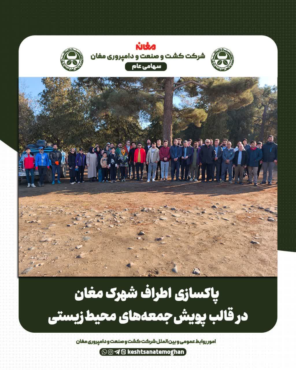 ⏪ پویش «جمعههای محیطزیستی مغان» روز جمعه ۲۸ آذرماه ۱۴۰۴ با حضور فرماندار شهرستان پارسآباد، بخشدار اسلامآباد، رئیس اداره حفاظت محیطزیست پارسآباد و اصلاندوز و با مشارکت و همکاری شهرداری شهرک(امور خدمات عمومی و پشتیبانی)، امور روابط عمومی و بین الملل و کارکنان شرکت کشت و صنعت و دامپروری مغان و فعالان محیطزیست منطقه مغان، در اطراف شهرک مغان برگزار شد.