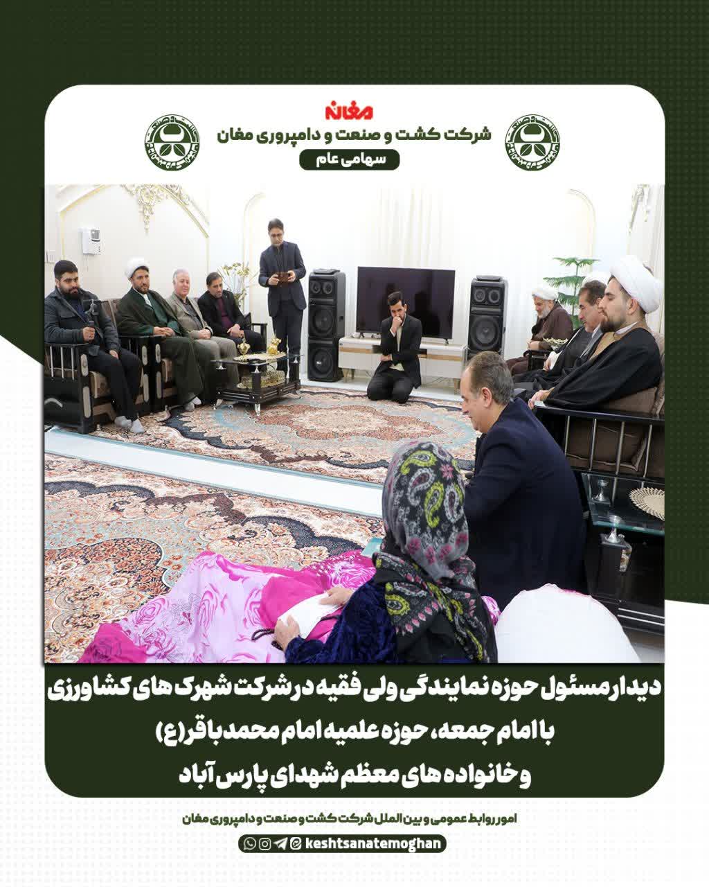⏪ در راستای پاسداشت مقام شامخ ایثار و شهادت، دکتر موسی ترابی، نایب رئیس هیئت مدیره شرکت کشت و صنعت و دامپروری مغان به همراه دکتر اسماعیلی، عضو هیئت مدیره و حجت الاسلام علی امدادی، مسئول حوزه نمایندگی ولی فقیه در شرکت شهرک های کشاورزی با خانوادههای معزز شهدا دیدار و گفتوگو کرد.