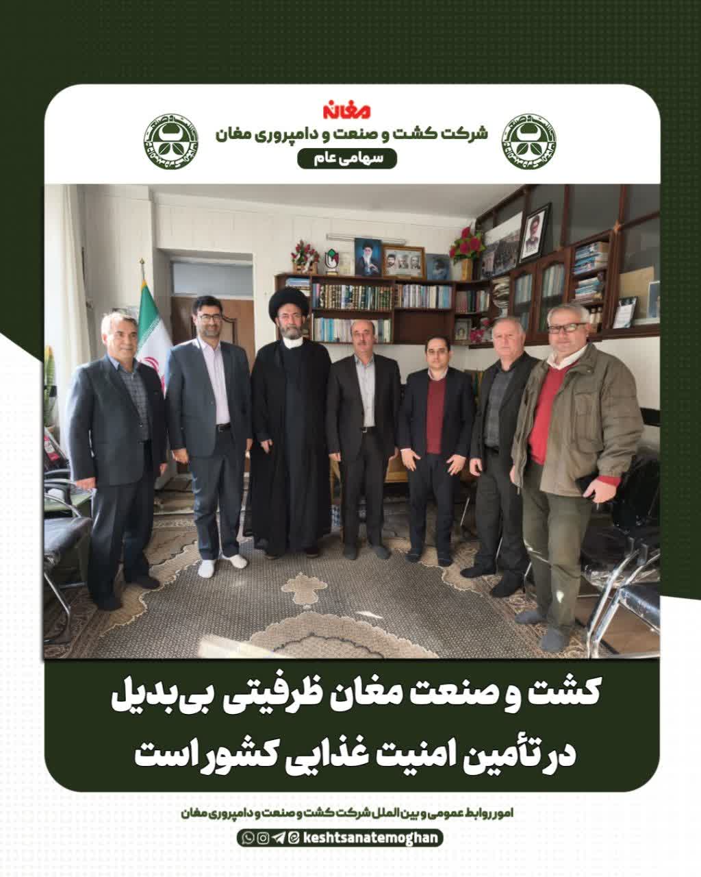 ✅ به گزارش امور روابط عمومی و بین الملل شرکت کشت و صنعت و دامپروری مغان، آیتالله سیدحسن عاملی در دیدار با مدیرعامل، رئیس و اعضای هیئتمدیره شرکت مغان با تأکید بر اهمیت این مجموعه اظهار داشت: شرکت کشت و صنعت و دامپروری مغان ظرفیت بزرگی برای منطقه و استان بوده و نقش بسزایی در تأمین امنیت غذایی دارد. انشاءالله با سرمایهگذاری به سود بیشتری دست پیدا میکند.
