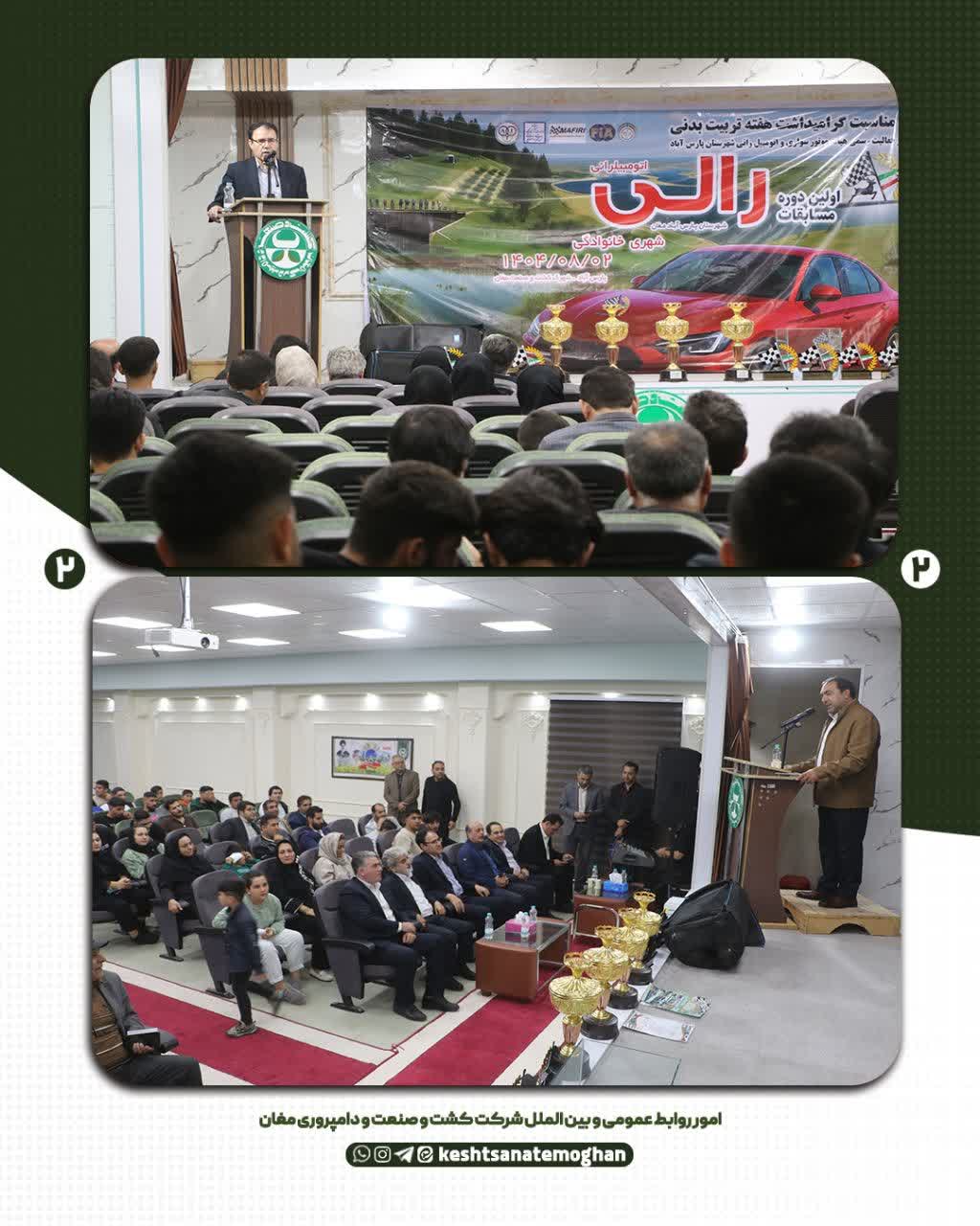 ✅ همزمان با پایان مسابقه، مهندس خلیل نیک شاد، مدیرعامل شرکت کشت و صنعت و دامپروری مغان به دلیل همکاری و حمایت از برگزاری مسابقات رالی توسط مهندس ابراهیم فهیمی، نماینده شهرستان های پارس آباد، بیله سوار و اصلاندوز؛ مهندس علی لطفی، فرماندار شهرستان پارس آباد و مهندس برات پیری، رئیس اداره ورزش و جوانان شهرستان پارسآباد مورد تجلیل و قدردانی قرار گرفت.