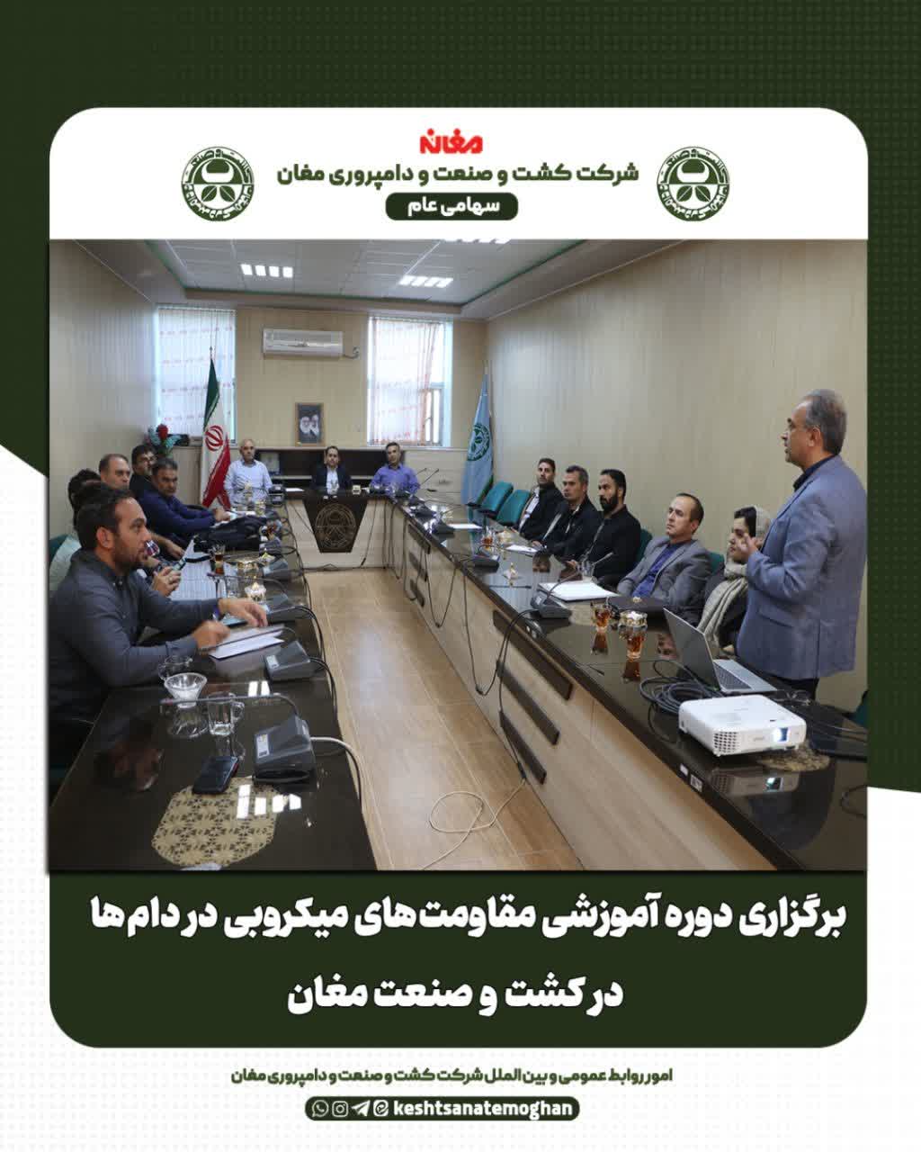 ⏪ با حضور رئیس و اعضای هیئت مدیره، مدیران و کارشناسان مجتمع دامپروری، دوره آموزشی تخصصی مقاومت های میکروبی در دام ها در کشت و صنعت مغان برگزار شد.