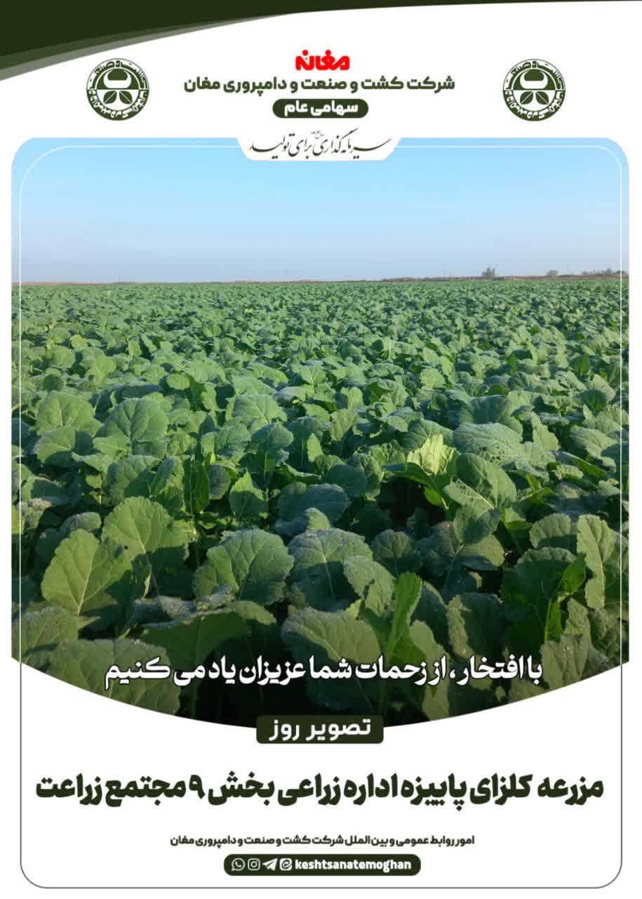 ✅شرکت کشت و صنعت و دامپروری مغان، ضمن تبریک این ایام فرخنده به همه مردم شریف ایران، بویژه خانواده بزرگ شرکت، افتخار دارد که با اتکا به ارزشهای متعالی اسلامی و انقلابی، در مسیر تولید، خودکفایی و خدمترسانی صادقانه به مردم گام برمی دارد و با تلاش جمعی کارکنان خدوم، در تحقق توسعه پایدار منطقه مغان نقشآفرینی می کند.