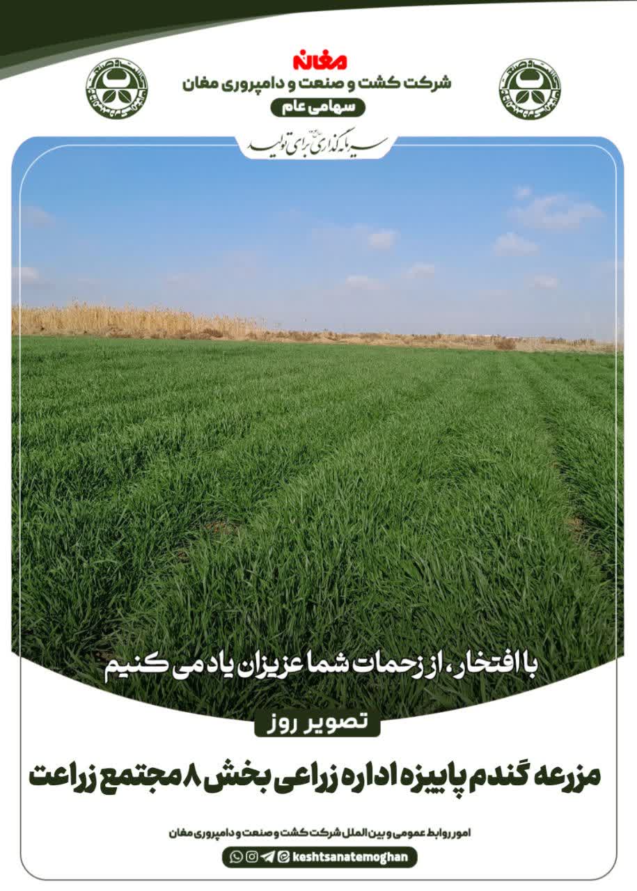 #تصویر_روز چاپ 💢 مزرعه گندم پاییزه اداره زراعی بخش ۸ مجتمع زراعت 🔸 امور روابط عمومی و بین الملل شرکت کشت و صنعت و دامپروری مغان نوشته شده توسط روابط عمومی و امور بین الملل شرکت بازدید: 12 بعدی