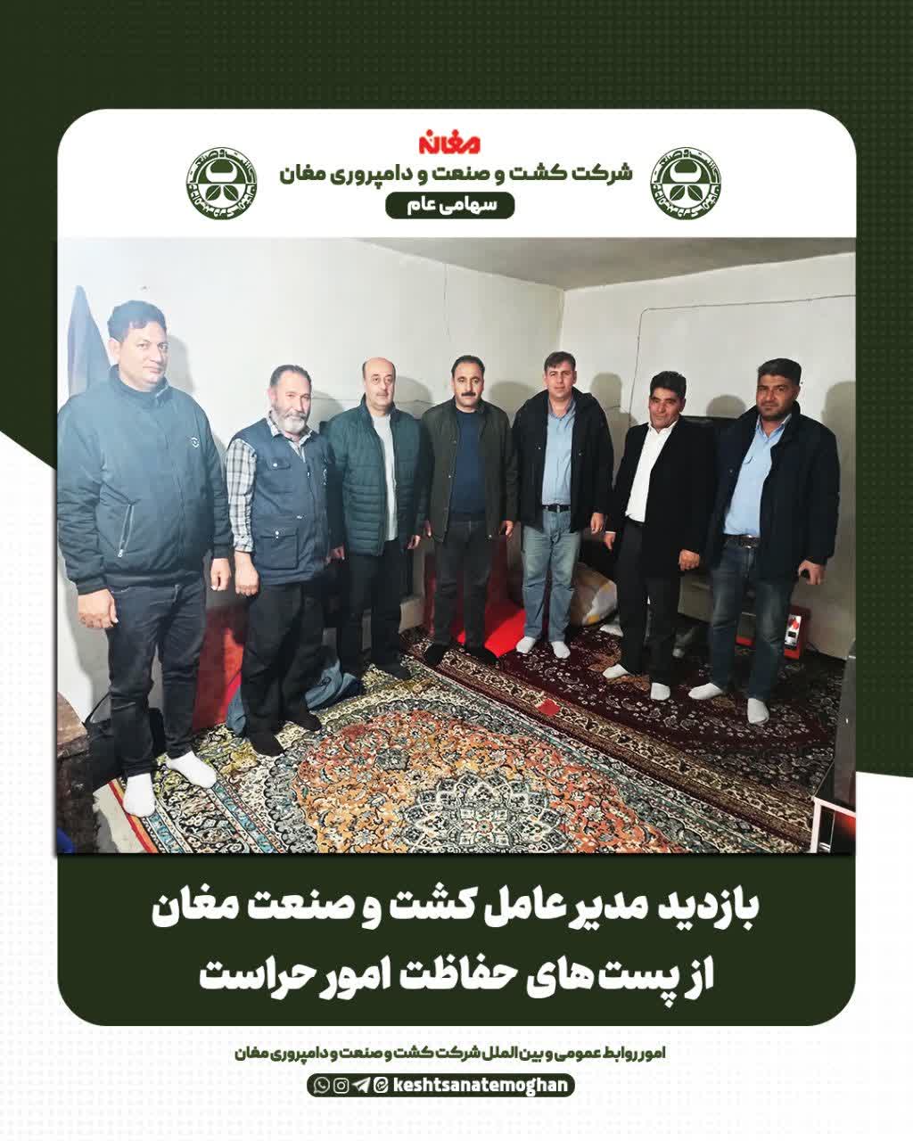 ⏪ مهندس خلیل نیکشاد، مدیرعامل شرکت کشت و صنعت و دامپروری مغان با حضور در پستهای نگهبانی و حفاظت امور حراست، از نزدیک در جریان روند فعالیتها و وضعیت کاری نیروهای این بخش قرار گرفت.