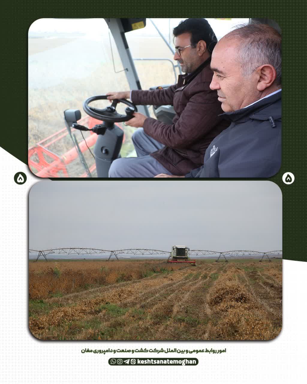 ✅ قائممقام مدیرعامل شرکت در ادامه با حضور در بخش هفت زراعی، از عملیات برداشت محصول سویا بازدید و روند اجرایی، میزان پیشرفت کار و کیفیت برداشت این محصول را بررسی کرد. در این بازدید، بر اهمیت مدیریت صحیح عملیات برداشت و برنامهریزی دقیق برای افزایش راندمان تولید محصولات زراعی تأکید شد.