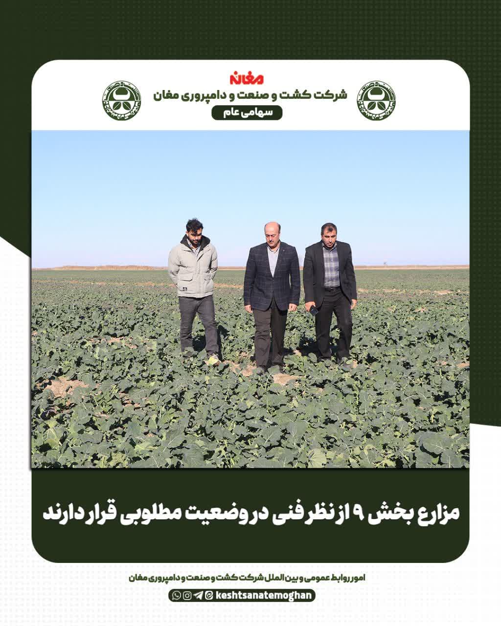 ✅ به گزارش امور روابط عمومی و بینالملل شرکت کشت و صنعت و دامپروری مغان، مهندس خلیل نیکشاد، مدیرعامل شرکت به همراه مدیر مجتمع زراعت و رئیس بخش ۹، از مزارع یونجه، گندم و کلزای بخش ۹ بازدید کرد و از نزدیک در جریان روند کشت، داشت و اقدامات فنی انجامشده در این مزارع قرار گرفت.