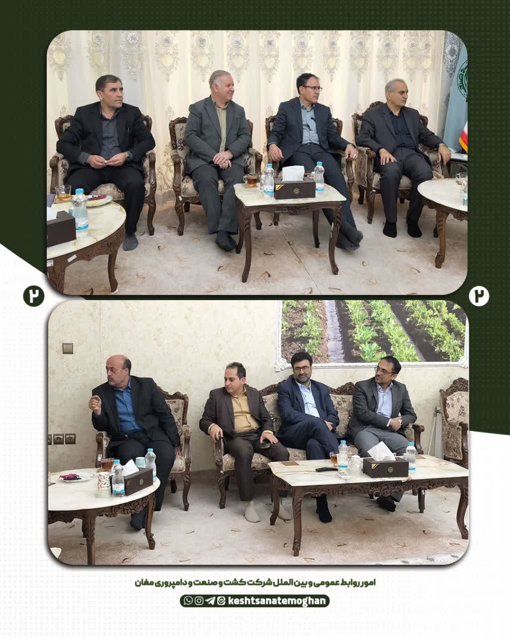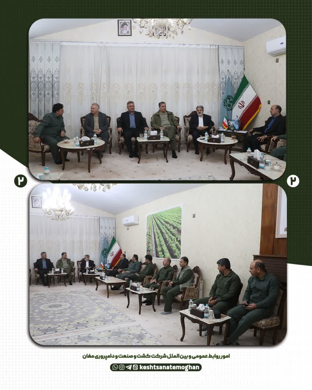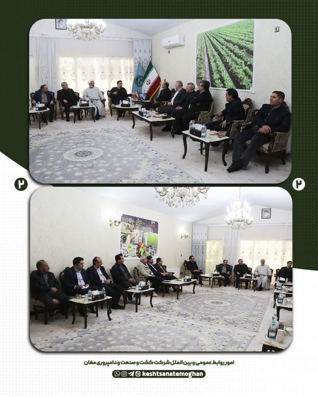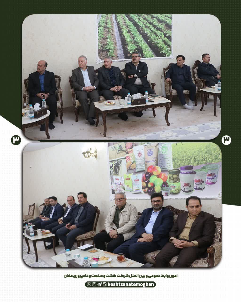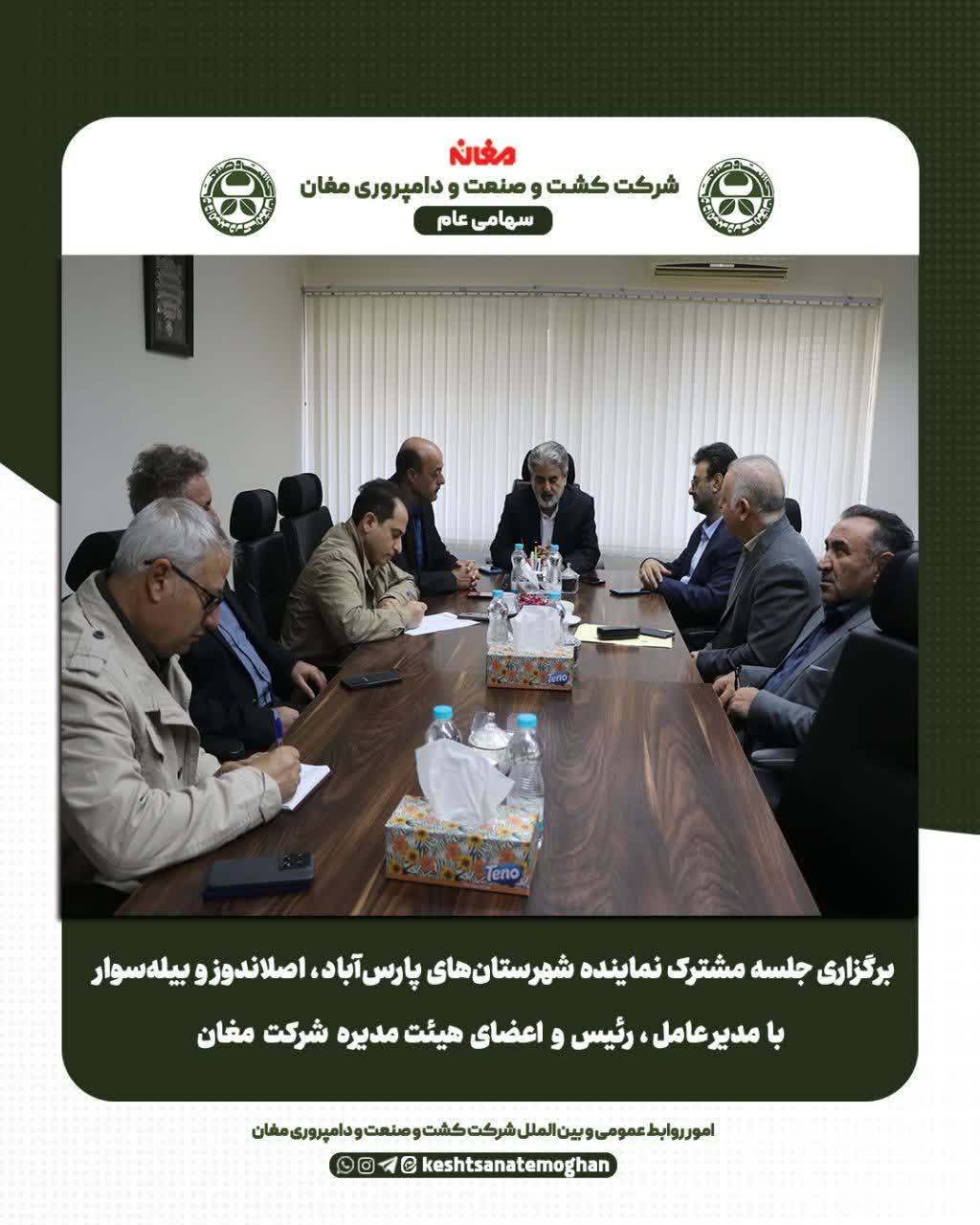 ⏪ به گزارش امور روابطعمومی و بینالملل شرکت کشت و صنعت و دامپروری مغان، نشست مشترکی با حضور نماینده محترم شهرستانهای پارسآباد، اصلاندوز و بیلهسوار، مدیرعامل، رئیس و اعضای هیئتمدیره شرکت برگزار شد.