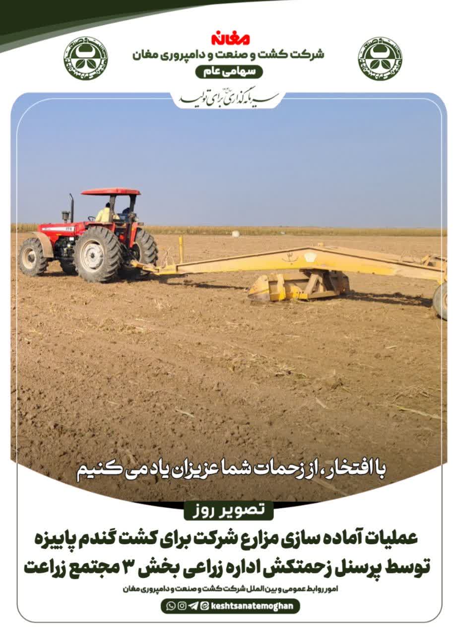 💢 عملیات آماده سازی مزارع شرکت برای کشت گندم پاییزه توسط پرسنل زحمتکش اداره زراعی بخش ۳ مجتمع زراعت
