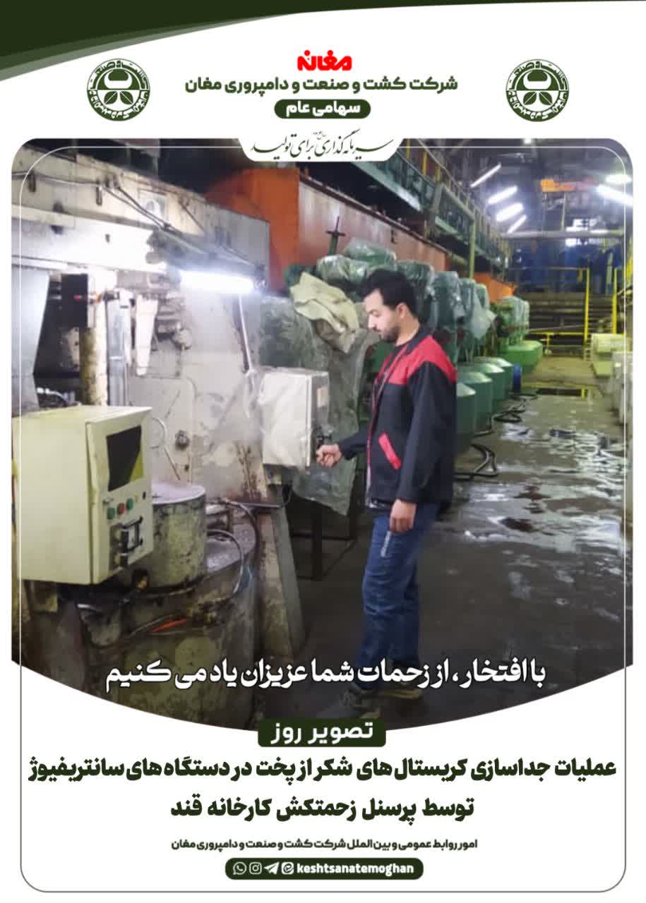💢 عملیات جداسازی کریستال های شکر از پخت در دستگاه های سانتریفیوژ توسط پرسنل زحمتکش کارخانه قند