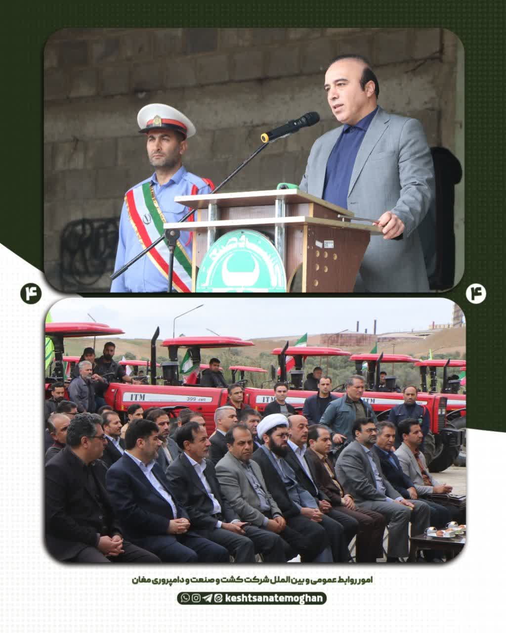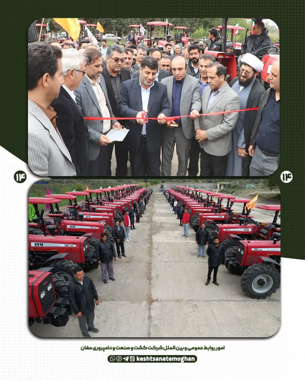 ⏪ مراسم آیین رونمایی از خرید ۵۰ دستگاه تراکتور مدل ITM399 در شرکت کشت و صنعت و دامپروری مغان با حضور جمعی از مسئولان عالیرتبه کشوری، استانی و شهرستانی در محل انبارهای مرکزی این مجموعه اقتصادی برگزار شد.