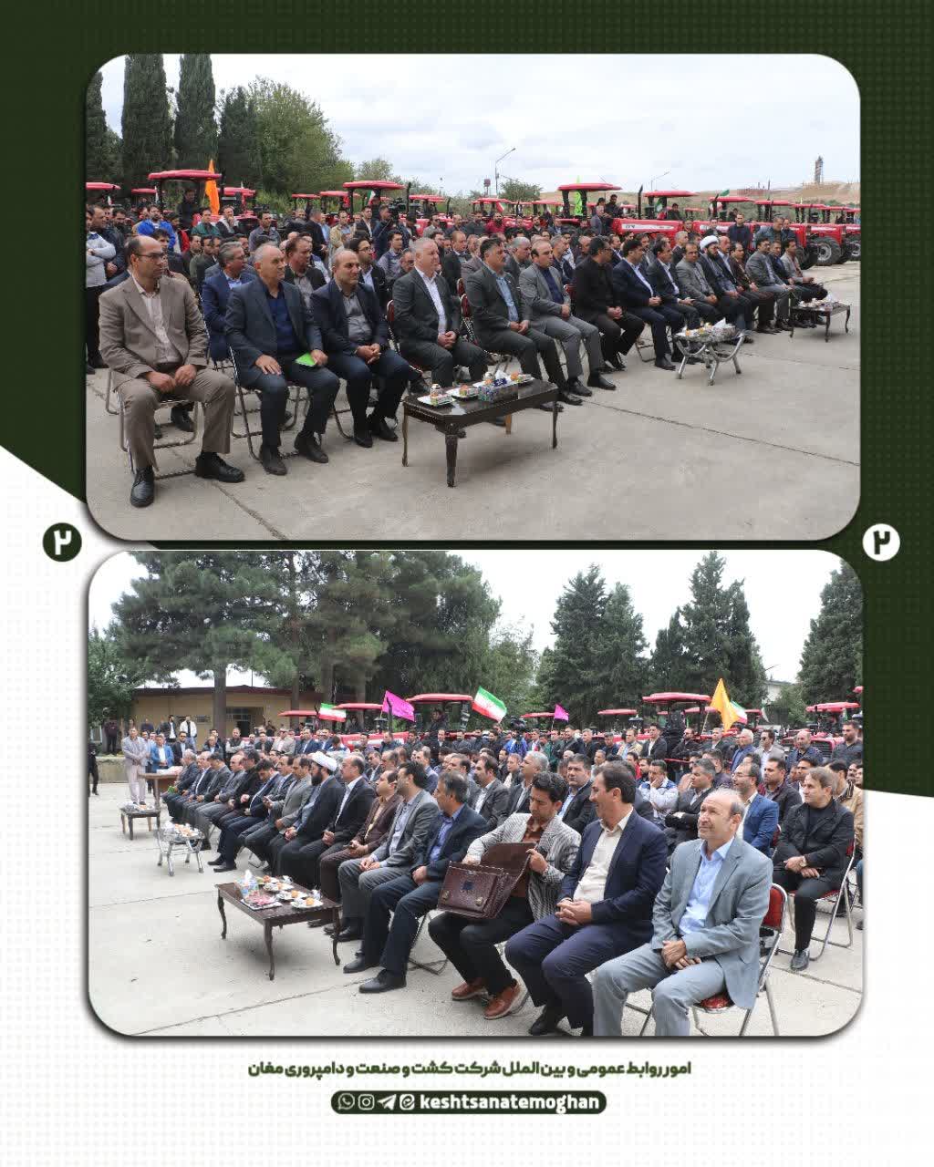 ✅ به گزارش امور روابط عمومی و بین الملل شرکت کشت و صنعت و دامپروری مغان در این آیین، شخصیتهای ملی، استانی و شهرستانی از جمله کرامت ویس، مدیرعامل شرکت ملی پخش فرآوردههای نفتی ایران؛ محمد امیرانی، مدیرعامل شرکت فرودگاهها و ناوبری هوایی؛ رضا مسرور، دبیر شورای عالی مناطق آزاد؛ اکبر فتحی، معاون برنامهریزی و اقتصادی وزارت جهاد کشاورزی؛ مسعود نصرتی، رئیس سازمان شهرداریها و دهیاریها؛ فرود عسکری، رئیس کل گمرک ایران؛ غلامرضا صالحی، رئیس بنیاد مسکن انقلاب اسلامی؛ سیدعبدالله ارجائی، معاون برنامهریزی و مدیریت شهری وزارت راه و شهرسازی؛ کاظم سلیمی، مدیرعامل انبارهای عمومی و خدمات گمرکی کشور؛ پیمان اسکندری، مدیرعامل و رئیس هیئت مدیره شرکت شهرکهای کشاورزی؛ صفدر نیازی، معاون آب و خاک وزارت جهاد کشاورزی؛ هاشم امینی، مدیرعامل شرکت مهندسی آب و فاضلاب کشور؛ محمد جوانبخت، معاون امور آب و آبفا وزارت نیرو؛ محمد ابراهیمنیا، رئیس امور آب، کشاورزی و محیط زیست سازمان برنامه و بودجه؛ حامد علامتی، مدیرعامل کانون پرورش فکری کودکان و نوجوانان؛ رضا اکبری، رئیس سازمان راهداری و حملونقل جادهای؛ سیدغنی نظری، معاون پارلمانی، حقوقی و امور استانهای وزارت ورزش؛ همچنین نمایندگان مجلس از جمله علی نیکزاد، نایب رئیس اول مجلس؛ صدیف بدری، عضو هیئت رئیسه مجلس؛ احد بیوته، رئیس مجمع نمایندگان استان اردبیل؛ ابراهیم فهیمی نماینده مردم شهرستان های پارسآباد،بیله سوارو اصلاندوز،محمد خوشسیما، نماینده گرمی و انگوت؛ وحید کنعانی، نماینده خلخال و کوثر؛ بابک رضازاده، نماینده مشگینشهر، و نیز مسعود امامی یگانه، استاندار اردبیل؛ علی لطفی، فرماندار شهرستان پارسآباد و سایر مسئولین شهرستان پارس آباد حضور یافتند.