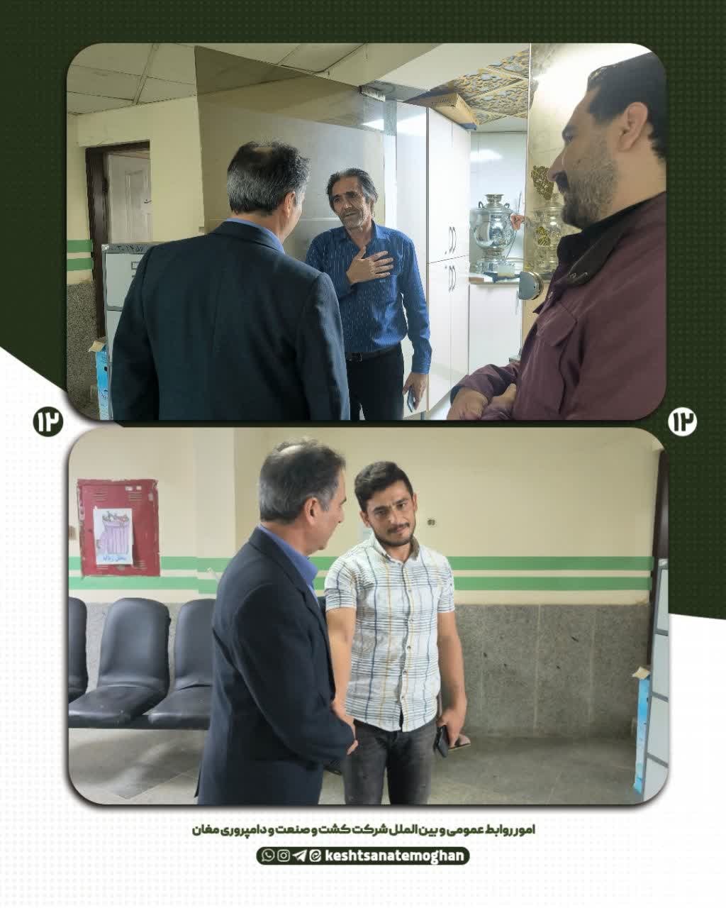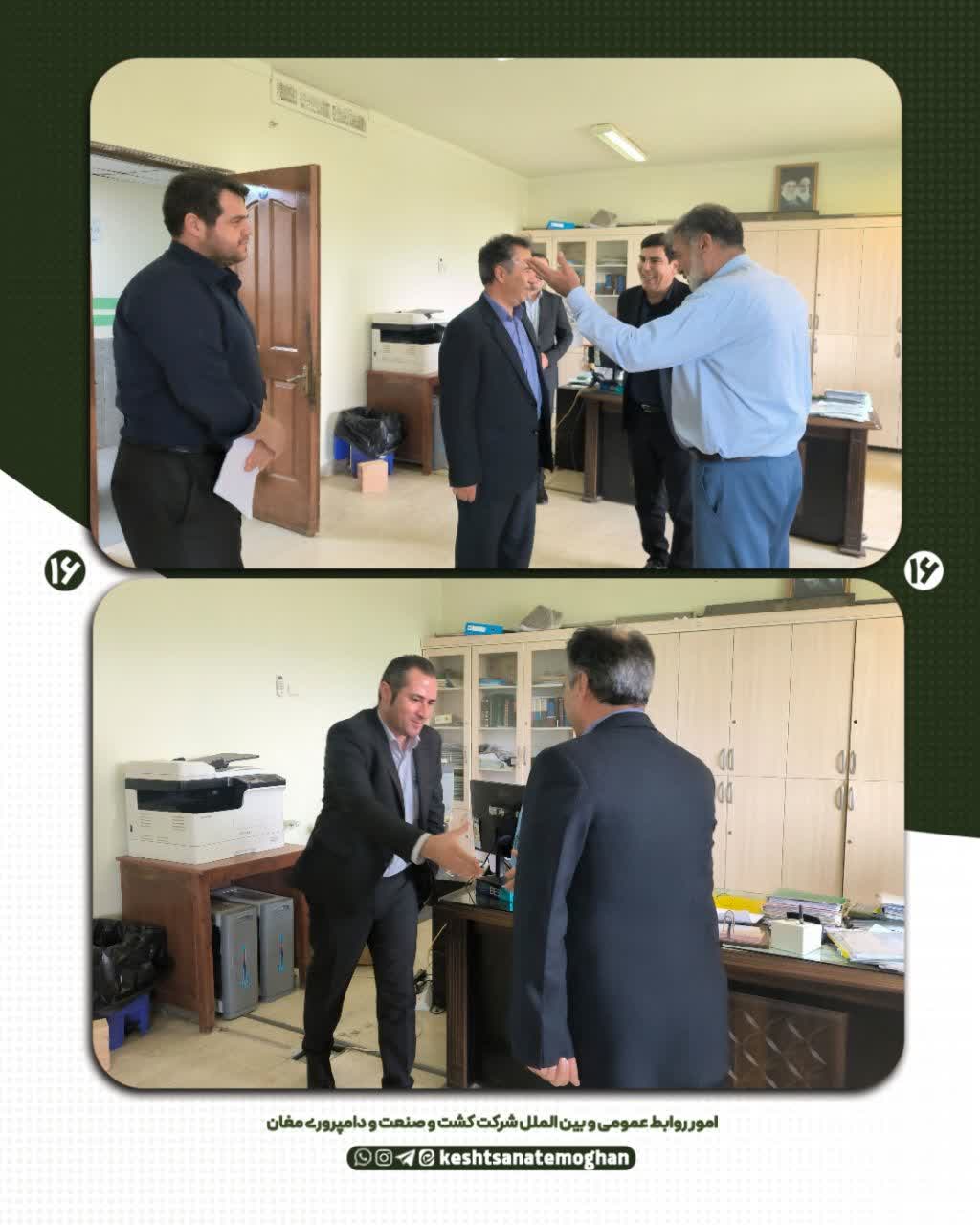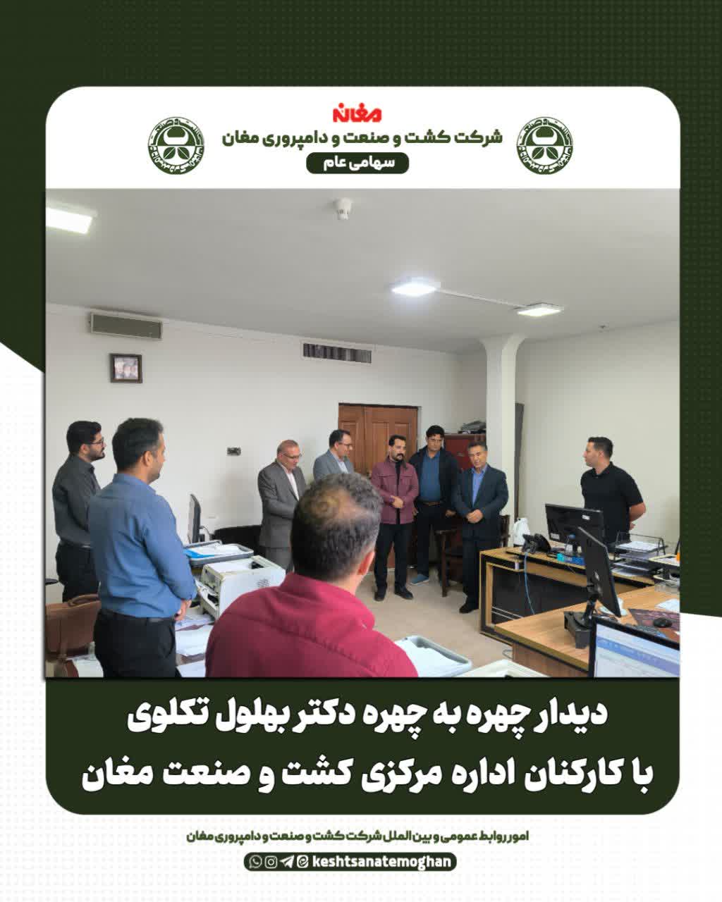 ✅ به گزارش امور روابط عمومی و بین الملل شرکت کشت و صنعت و دامپروری مغان دکتر بهلول تکلوی، عضو هیئت مدیره شرکت مغان با حضور در اداره مرکزی شرکت، از بخشهای مختلف بازدید و با کارکنان این مجموعه، دیدار و گفتگو کرد.