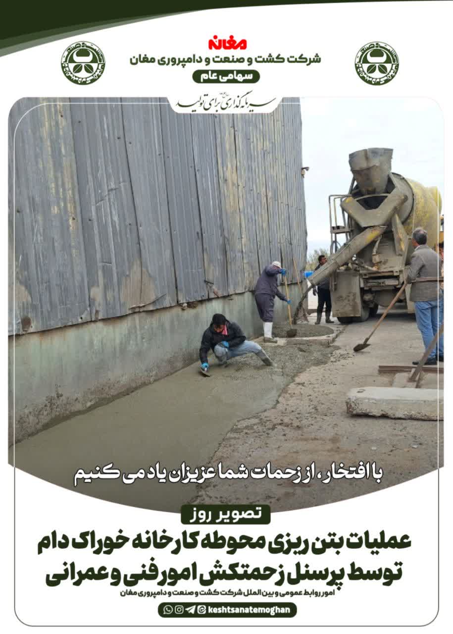 💢عملیات بتن ریزی محوطه کارخانه خوراک دام توسط پرسنل زحمتکش امور فنی و عمرانی