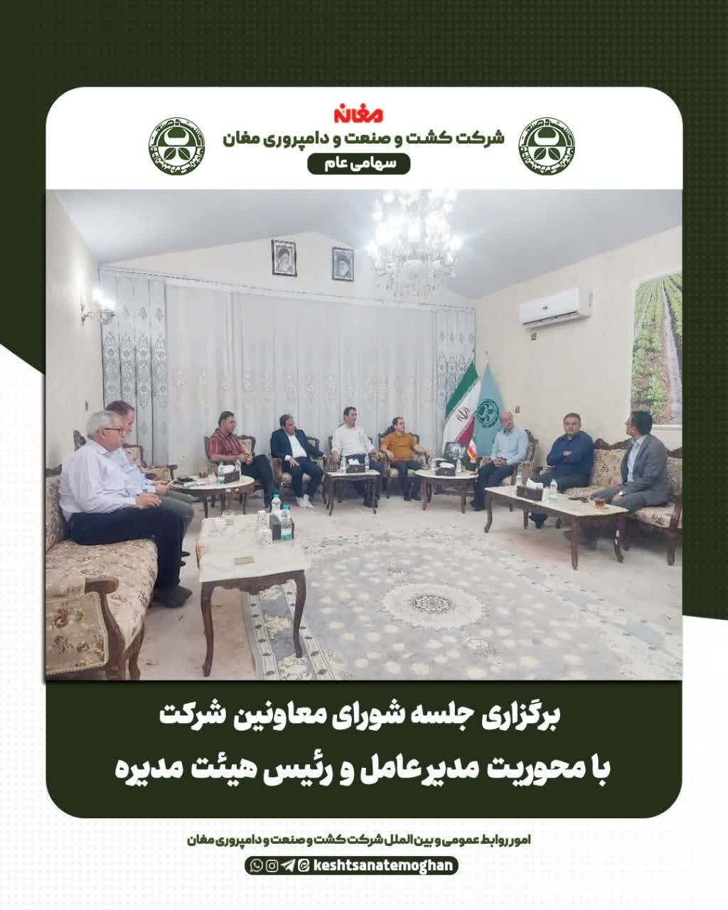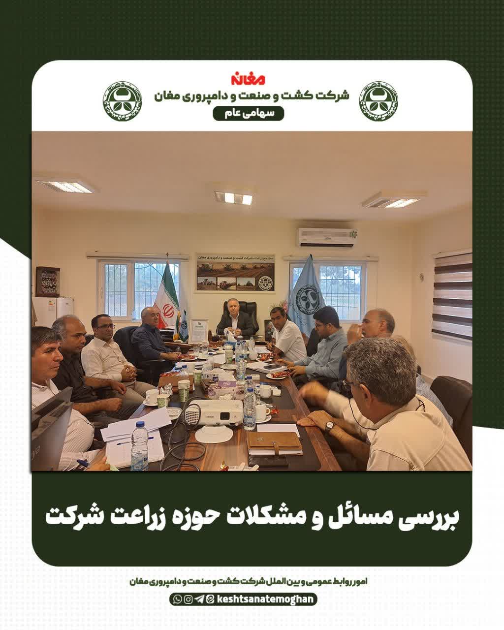 ✅ این جلسه در راستای ارتقاء بهرهوری و تحقق اهداف کلان تولیدی شرکت کشت و صنعت و دامپروری مغان برگزار گردید و امید است با تعامل سازنده تمامی بخشها، مشکلات حوزه زراعت به شکل مؤثری مرتفع گردد.