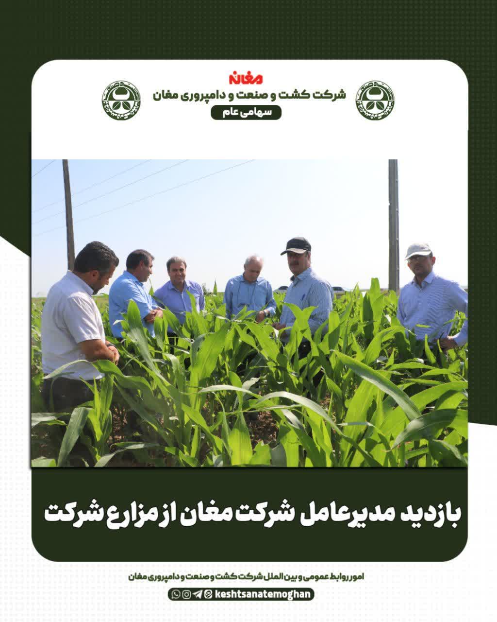 ⏪ مهندس خلیل نیکشاد مدیرعامل شرکت کشت و صنعت و دامپروری مغان به همراه معاونت اداری ،مالی و بازرگانی ، مدیر حراست، مدیر مجتمع زراعت و جمعی از کارشناسان این حوزه از بخشهای مختلف مزارع شرکت بازدید کرد.