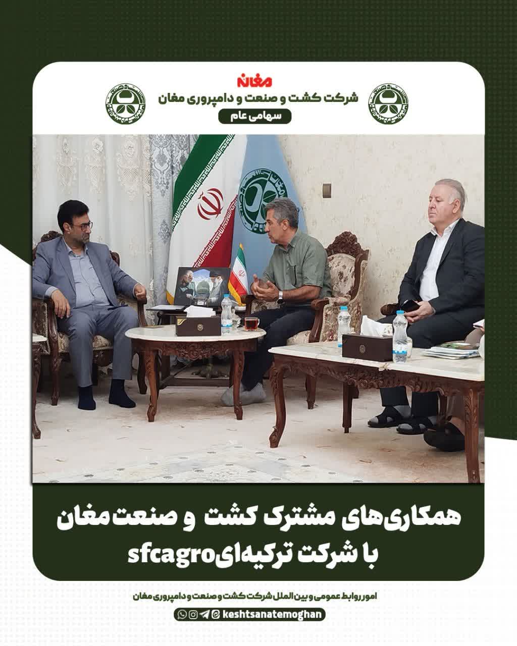 ⏪ در دیداری که میان دکتر علی نظری، جانشین مدیرعامل شرکت کشت و صنعت و دامپروری مغان و مدیرعامل شرکت ترکیهای sfcagro برگزار شد، طرفین بر توسعه همکاریهای دوطرفه و استفاده از ظرفیتهای بالقوه کشت و صنعت مغان تأکید کردند.