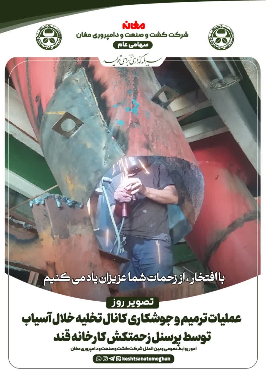 💢 عملیات ترمیم و جوشکاری کانال تخلیه خلال آسیاب توسط پرسنل زحمتکش کارخانه قند