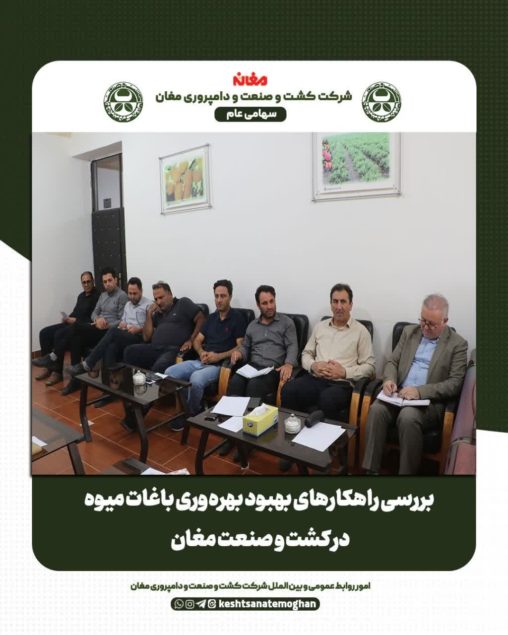 ⏪ جلسه بررسی مسائل و مشکلات مجتمع باغات میوه شرکت کشت و صنعت و دامپروری مغان با حضور دکتر موسی ترابی، نایب رئیس هیئت مدیره، مهندس احمد شهریار، معاون کشاورزی و دامپروری، و دکتر قدیر پسندی، معاون برنامهریزی و بودجه برگزار شد.