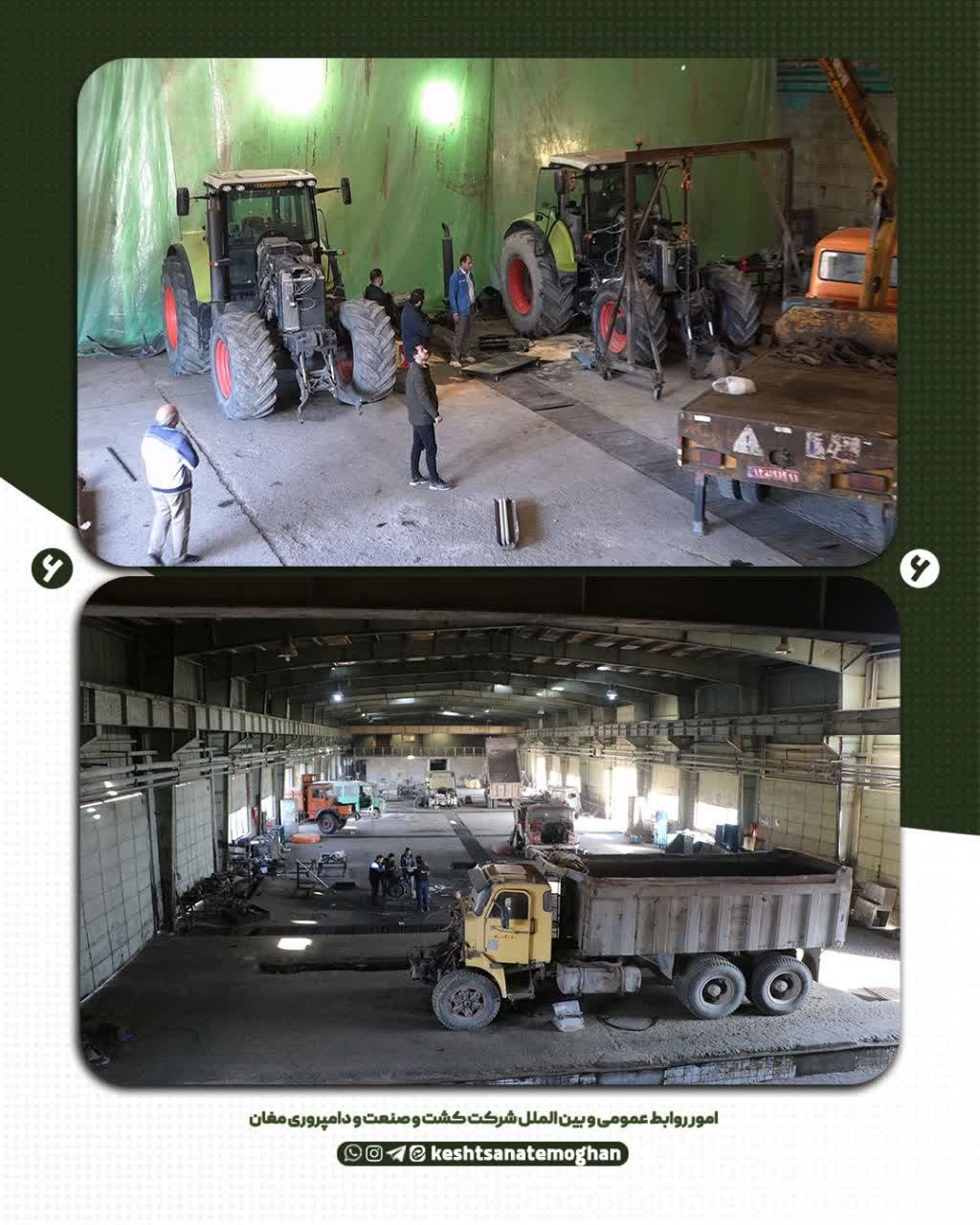 ✅ مدیر امور پشتیبانی فنی افزود: هماکنون حدود ۱۱۸۰ دستگاه انواع ماشینآلات کشاورزی، راهسازی و حملونقل در شرکت فعال است که تعمیر، نگهداری و خدمات فنی آنها به صورت مستمر انجام میشود.