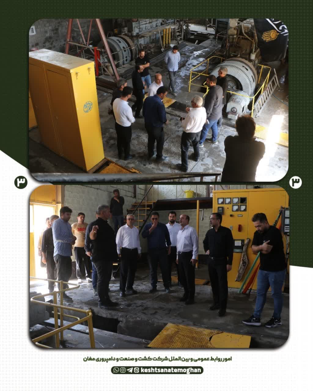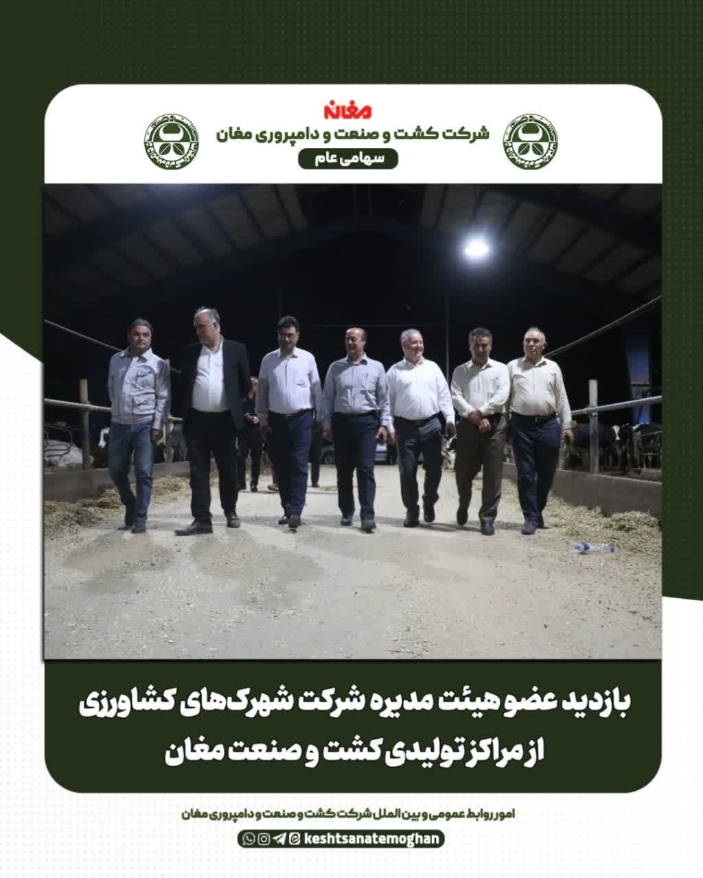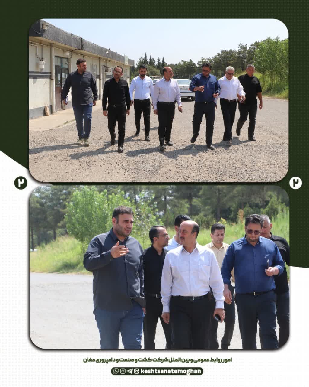 ✅ به گزارش امور روابط عمومی و بین الملل شرکت کشت و صنعت و دامپروری مغان این بازدید با حضور دکتر زلقی، عضو هیئت مدیره شرکت شهرکهای کشاورزی؛ دکتر خلیل نیکشاد، مدیرعامل کشت و صنعت مغان؛ دکتر موسی ترابی، دکتر علی نظری و دکتر بهلول تکلوی، اعضای جدید هیئت مدیره شرکت؛ مهندس احمد شهریار، معاون کشاورزی و دامپروری و مهندس کیومرث خانمحمدیان، معاون فنی و صنعتی شرکت انجام شد.
