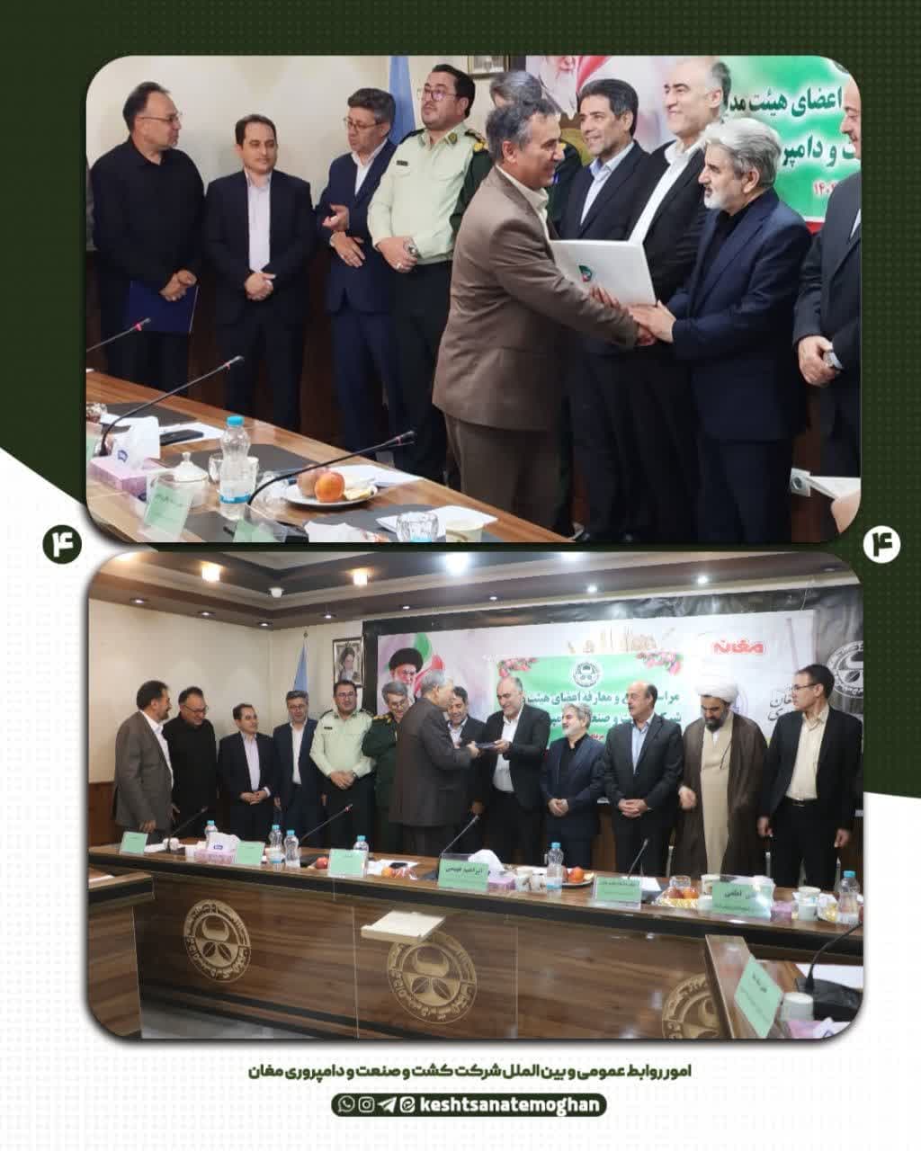 ✅ لازم بذکر است، در پایان این مراسم، احکام صادره به اعضای جدید هیئت مدیره کشت و صنعت مغان تقدیم گردید و با اهدای لوح سپاس از اعضای سابق هیئت مدیره شرکت، تجلیل شد.