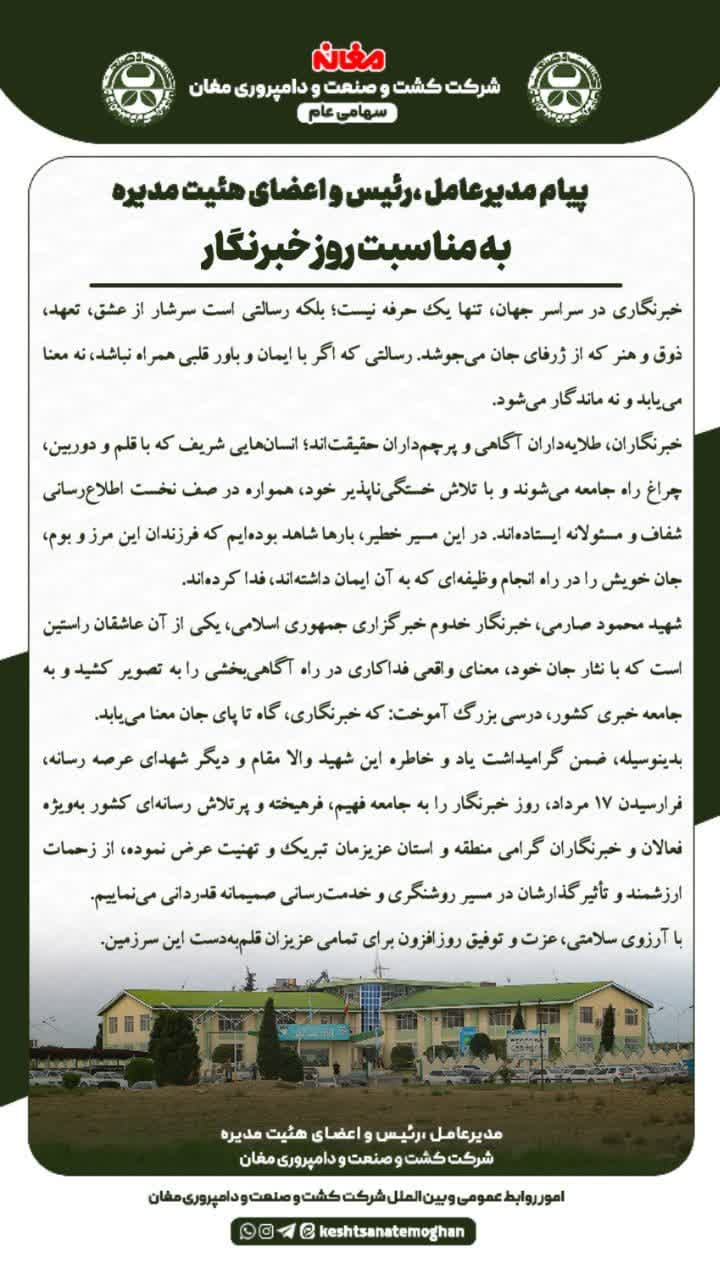 ✍️ امور روابط عمومی و بین الملل شرکت کشت و صنعت و دامپروری مغان