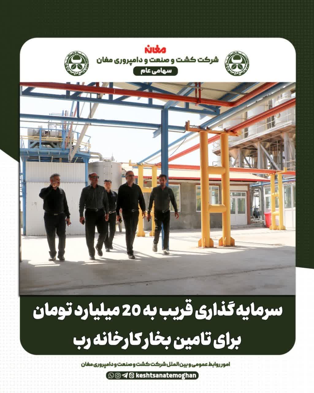 مدیرعامل کشت و صنعت مغان در بازدید از کارخانه رب ضمن تاکید بر استقلال تامین بخار این واحد صنعتی از کارخانه قند مغان اظهار داشت: قریب به 20میلیارد تومان برای خرید و راه اندازی بویلر بخارسرمایه گذاری شده که ضمن تامین بخار کارخانه رب،تامین بخار این واحد صنعتی از کارخانه قند مغان مجزا و مستقل می شود.