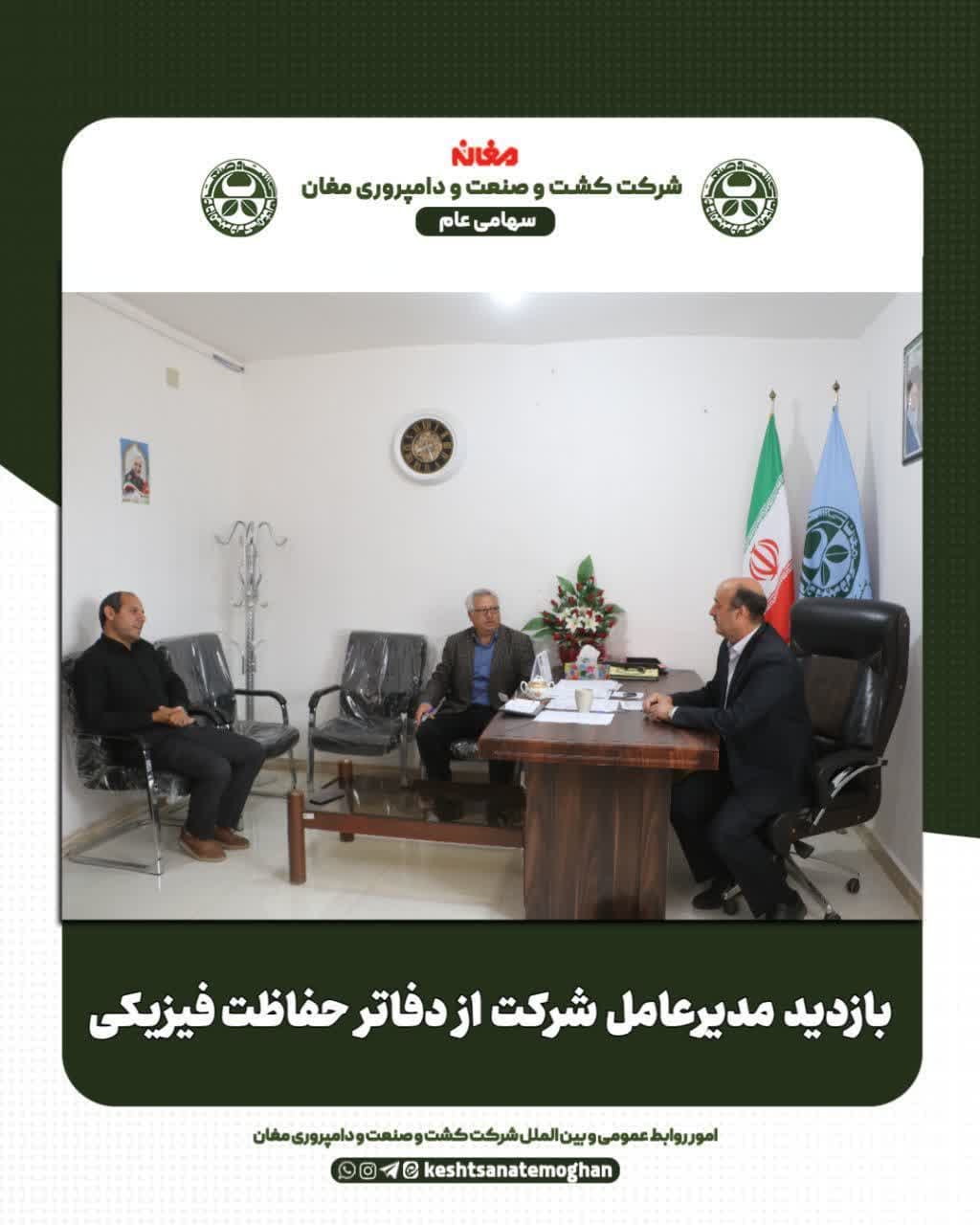 در ادامه بازدیدهای میدانی با هدف بهبود بهرهوری و ارتقاء امنیت سازمانی، مدیرعامل کشت و صنعت مغان در دفاتر معاونت حفاظت فیزیکی امور حراست شرکت حضور یافت.