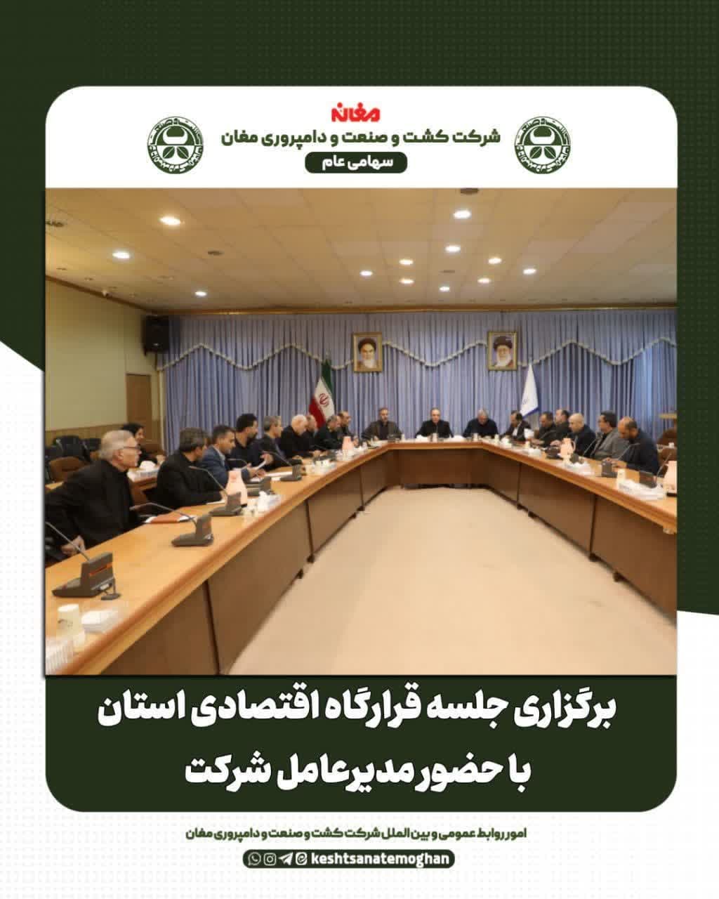 ⏪ جلسه قرارگاه اقتصادی استان اردبیل با حضور مدیرعامل کشت و صنعت مغان و معاون اقتصادی و هماهنگی استانداری اردبیل تشکیل یافت.