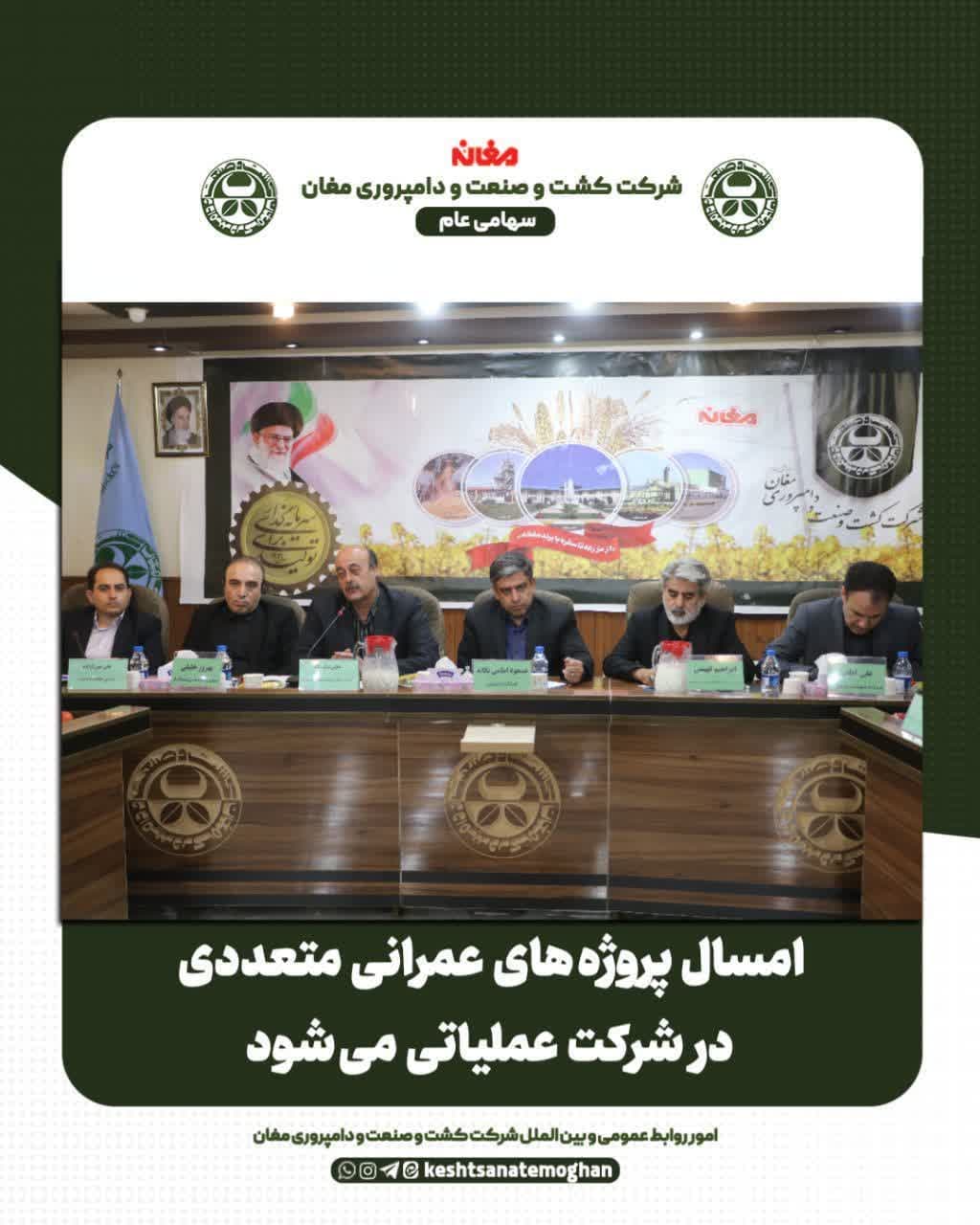 ✅در این نشست، مهندس خلیل نیکشاد با اشاره به جایگاه منحصربهفرد شرکت مغان بهعنوان یکی از بزرگترین قطبهای تولیدی کشور در بخشهای کشاورزی، دامپروری، باغبانی و صنایع تبدیلی، به تشریح ابعاد مختلف فعالیتها، ظرفیتها و طرحهای توسعه ای شرکت پرداخت.