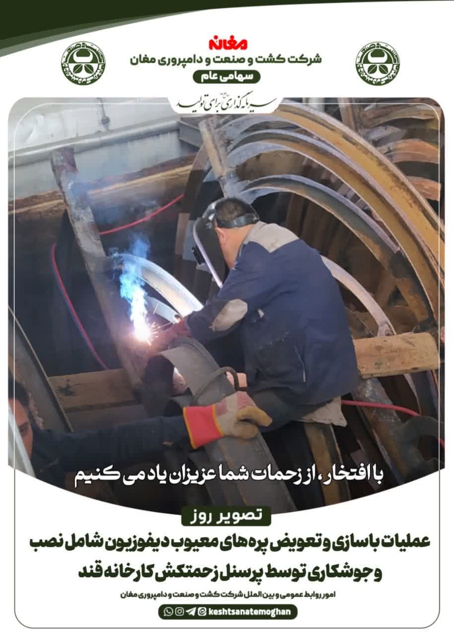💢عملیات بازسازی و تعویض پره های معیوب دیفوزیون شامل نصب و جوشکاری توسط پرسنل زحمتکش کارخانه قند