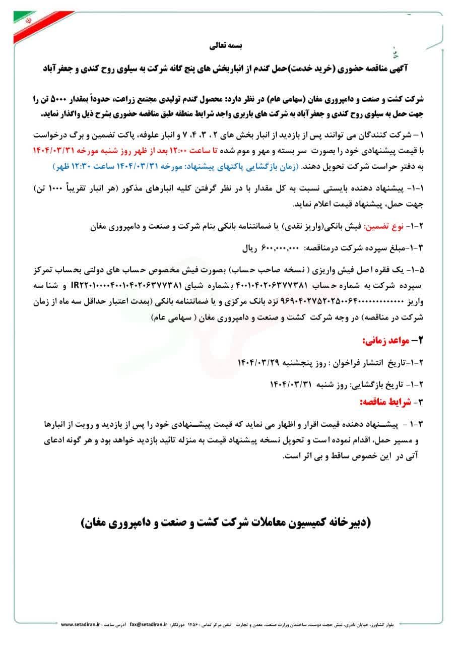 🔰(دبیرخانه کمیسیون معاملات شرکت کشت و صنعت و دامپروری مغان)