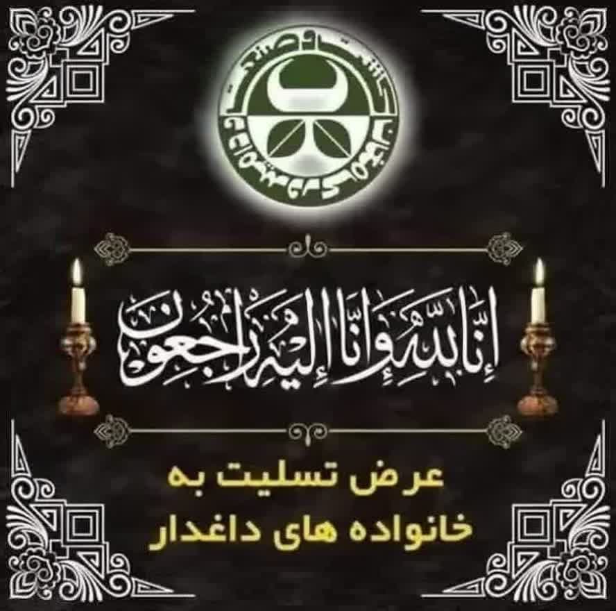 ◾️با نهایت تأسف و تأثر بدینوسیله مصیبت وارده درگذشت دایی گرامیتان را خدمت شما و خانواده محترم و سایر بازماندگان تسلیت عرض نموده و از خداوند منان برای آن سفر کرده غفران و رحمت واسعه الهی و برای خانواده مکرم، منسوبین، دوستان، آشنایان و سایر بازماندگان صبر جمیل، اجر جزیل و سلامتی همراه با طول عمر باعزت از پروردگار متعال خواهانیم.