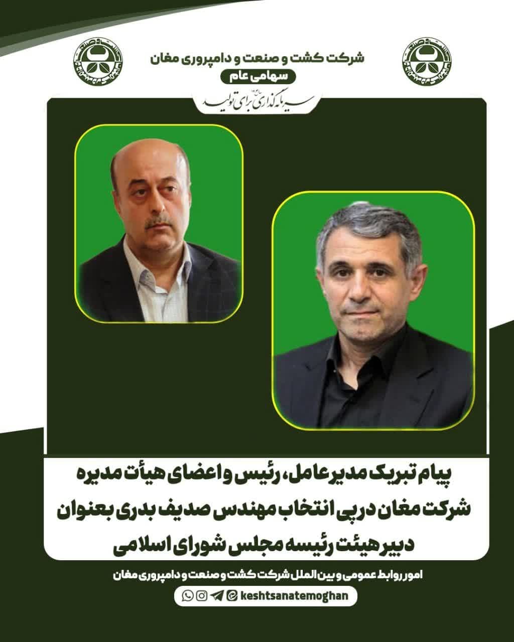 ✍️ امور روابط عمومی و بینالملل شرکت کشت و صنعت و دامپروری مغان