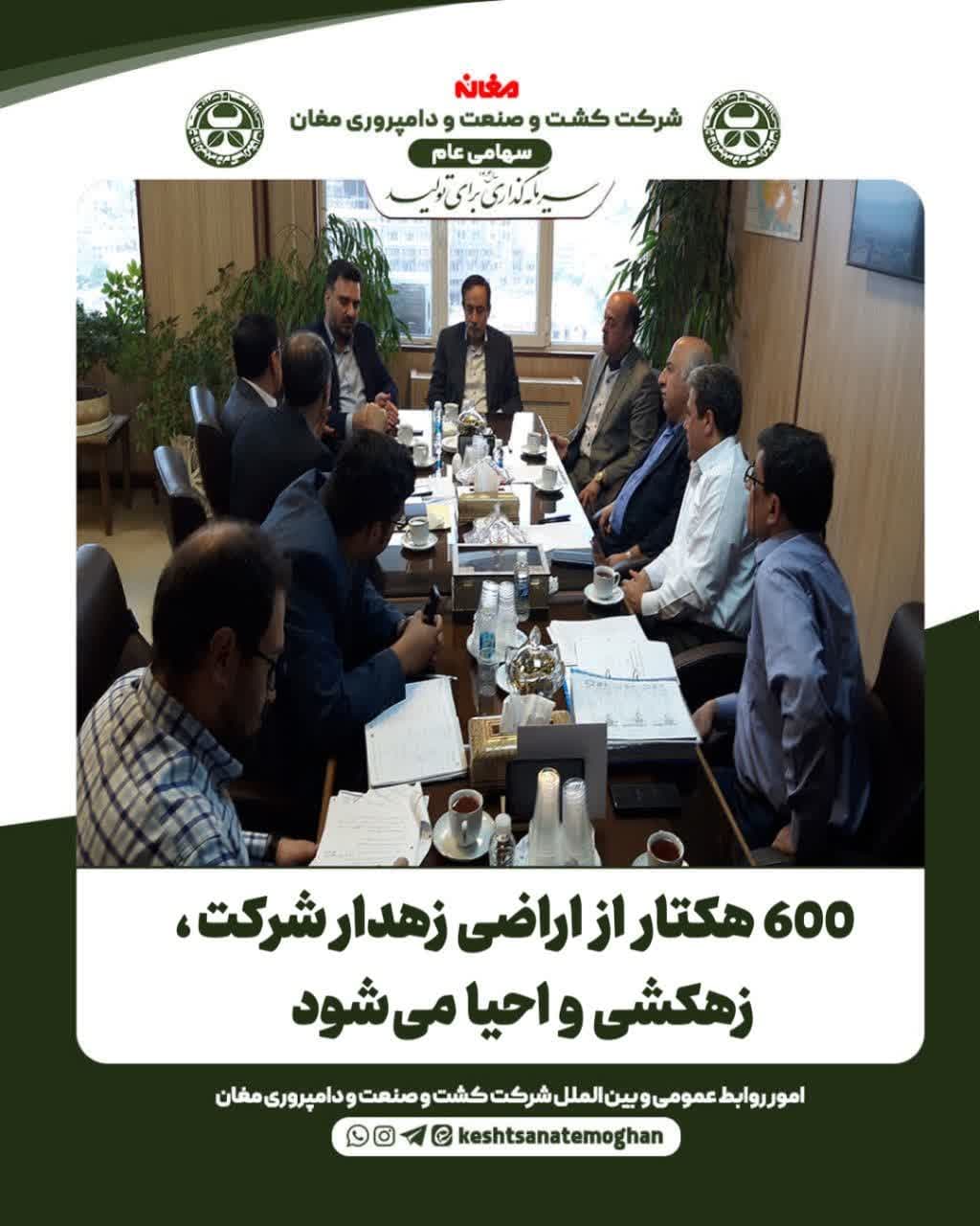 ✅ لازم بذکر است، این جلسه با حضور مدیرعامل، اعضا هیئت مدیره، معاون برنامهریزی و توسعه منابع، مدیر حراست، مدیر حوزه مدیریت، نماینده تامالاختیار مدیرعامل در امور شرکتهای تابعه و وابسته شرکت شهرکهای کشاورزی، مدیرعامل و رئیس هیئتمدیره شرکت کشت و صنعت و دامپروری مغان و عضو هیئت مدیره شرکت پارس در سالن جلسات شرکت شهرکهای کشاورزی برگزار شد.