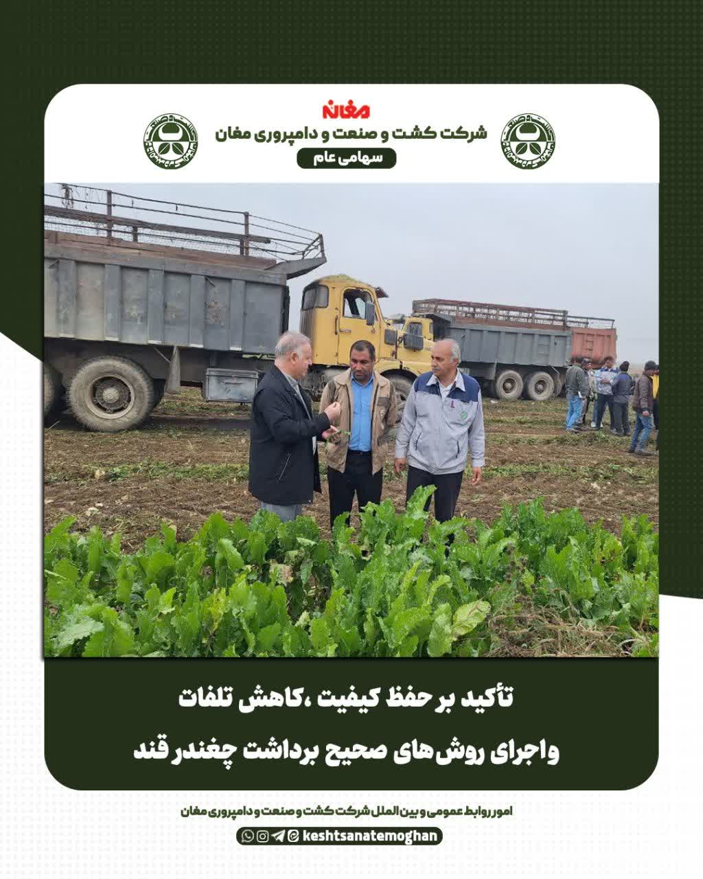 ✅ به گزارش امور روابط عمومی و بین الملل شرکت کشت و صنعت و دامپروری مغان دکتر موسی ترابی، نایب رئیس هیئت مدیره شرکت با تأکید بر لزوم رعایت استانداردهای برداشت و جلوگیری از تلفات چغندر قند در آخرین مرحله از عملیات زراعی اظهار داشت: مدیریت صحیح عملیات برداشت، نقش کلیدی در افزایش راندمان و تأمین پایدار خوراک کارخانه قند مغان دارد که برنامه ریزی دقیق، نظارت مستمر و هماهنگی عملیات میدانی از مهمترین الزامات این دوره از عملیات زراعی است.
