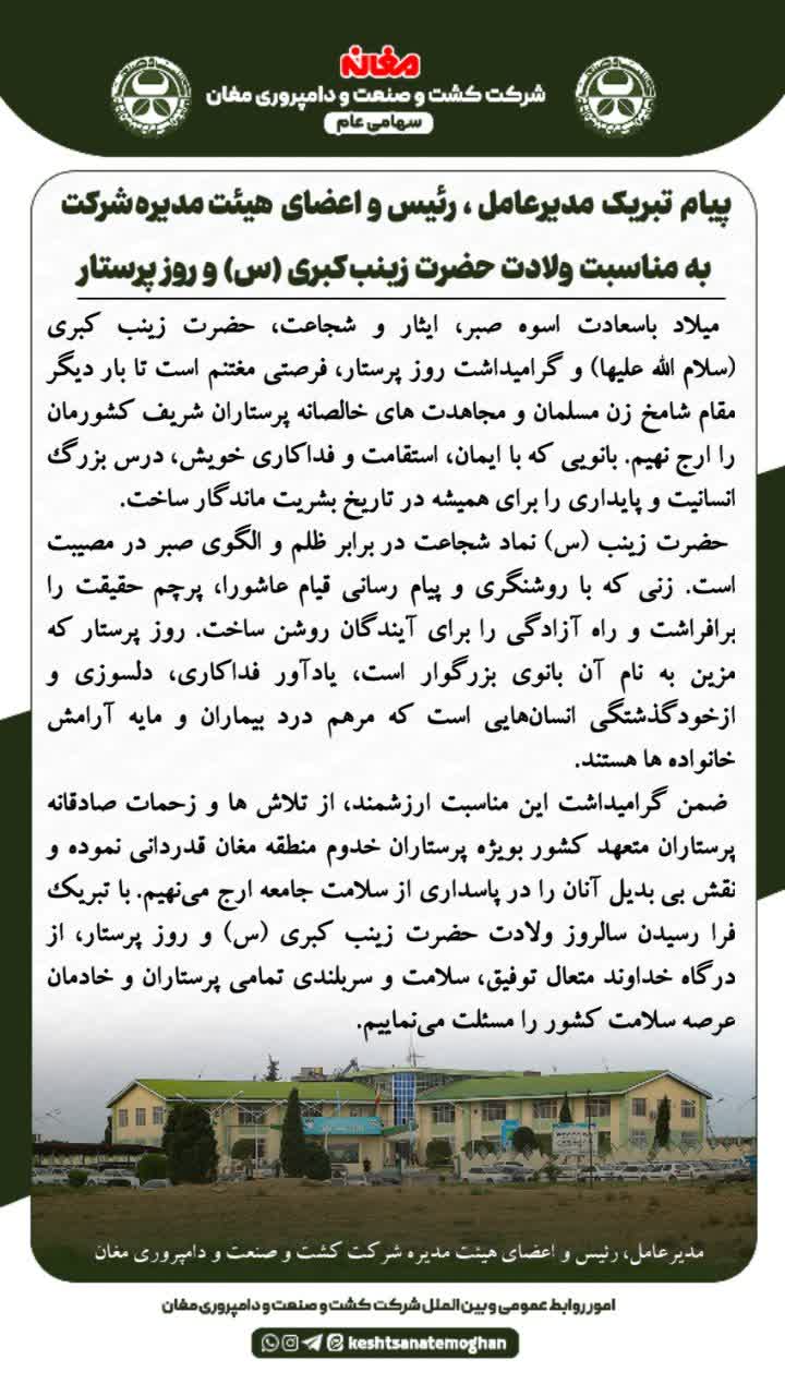 ✍️ امور روابط عمومی و بین الملل شرکت کشت و صنعت و دامپروری مغان